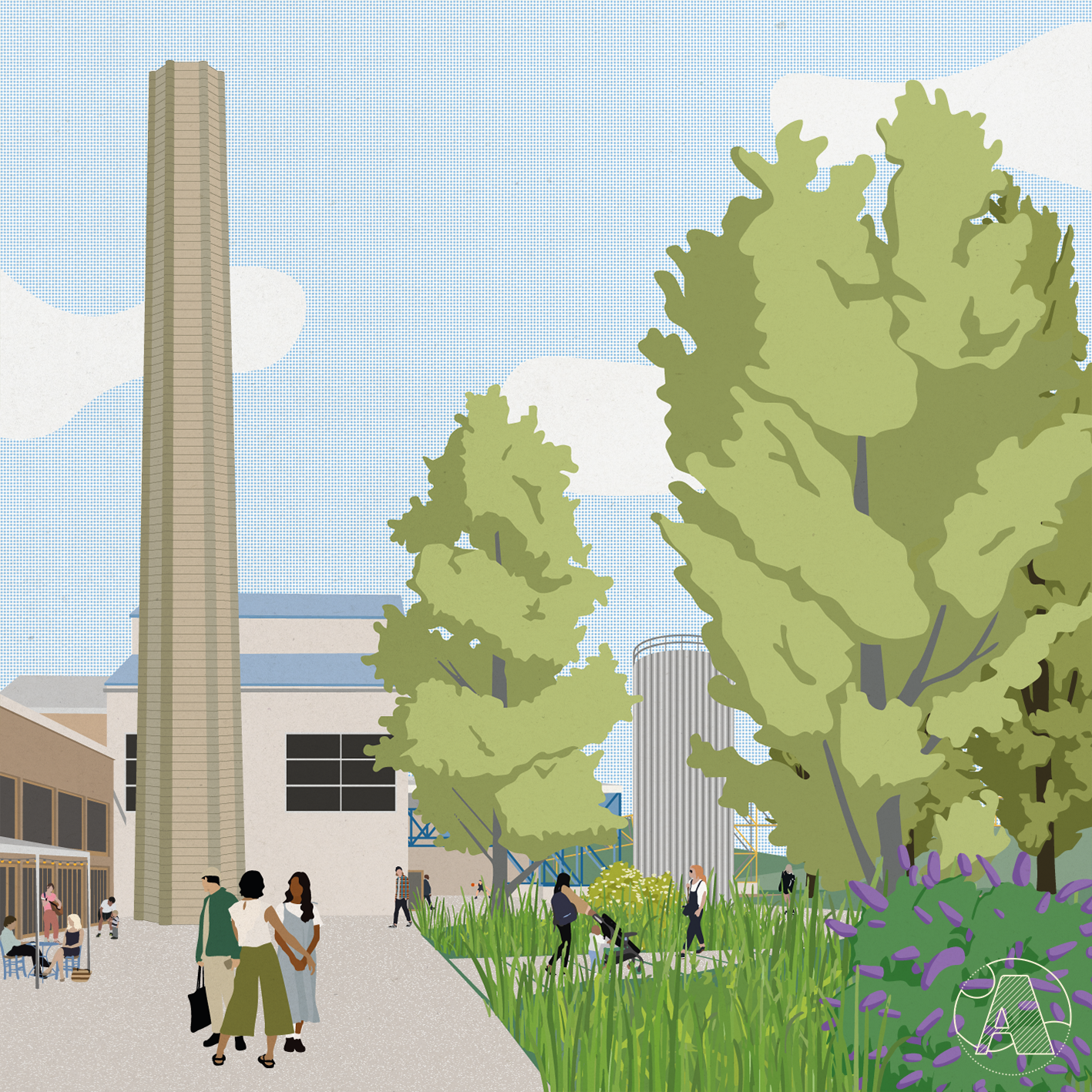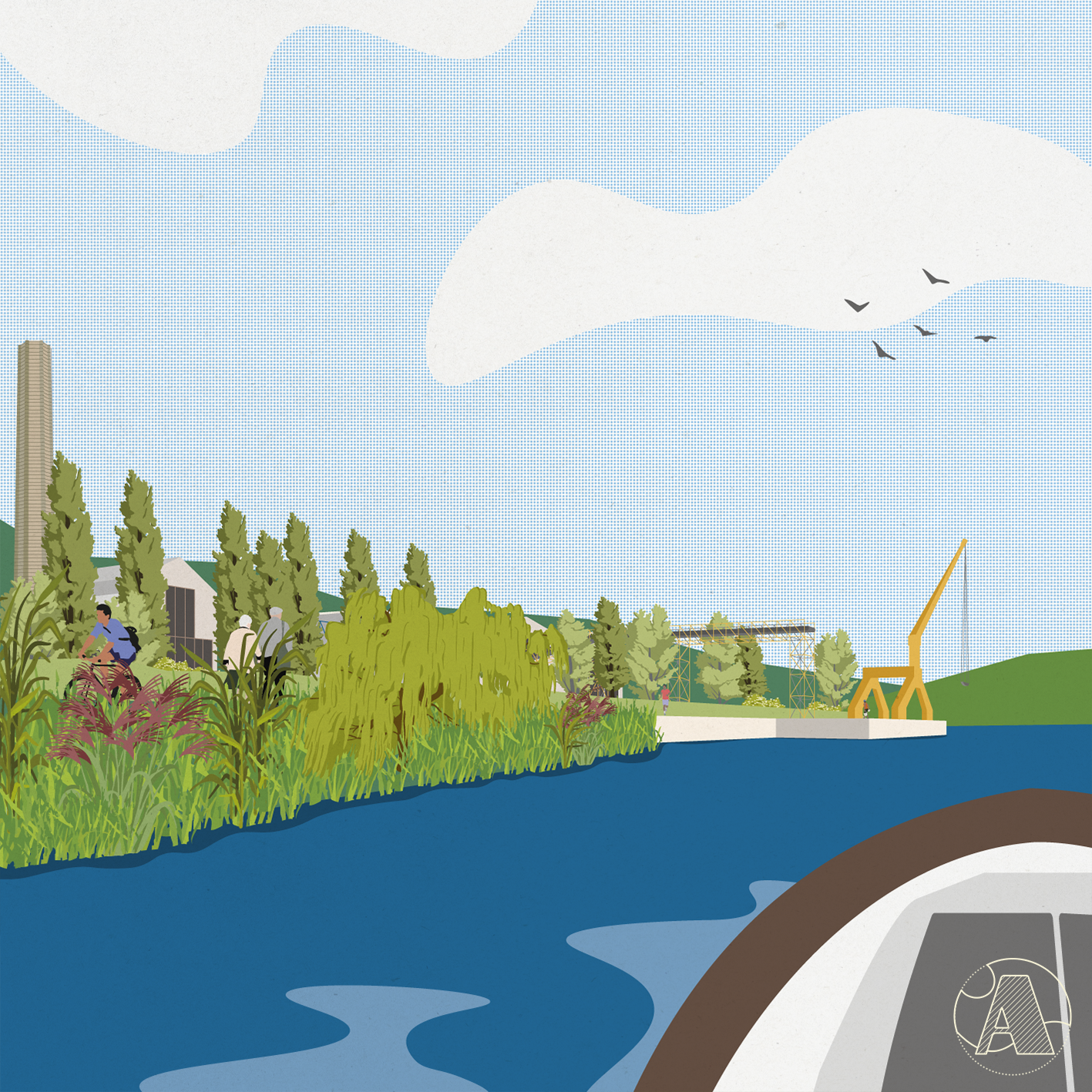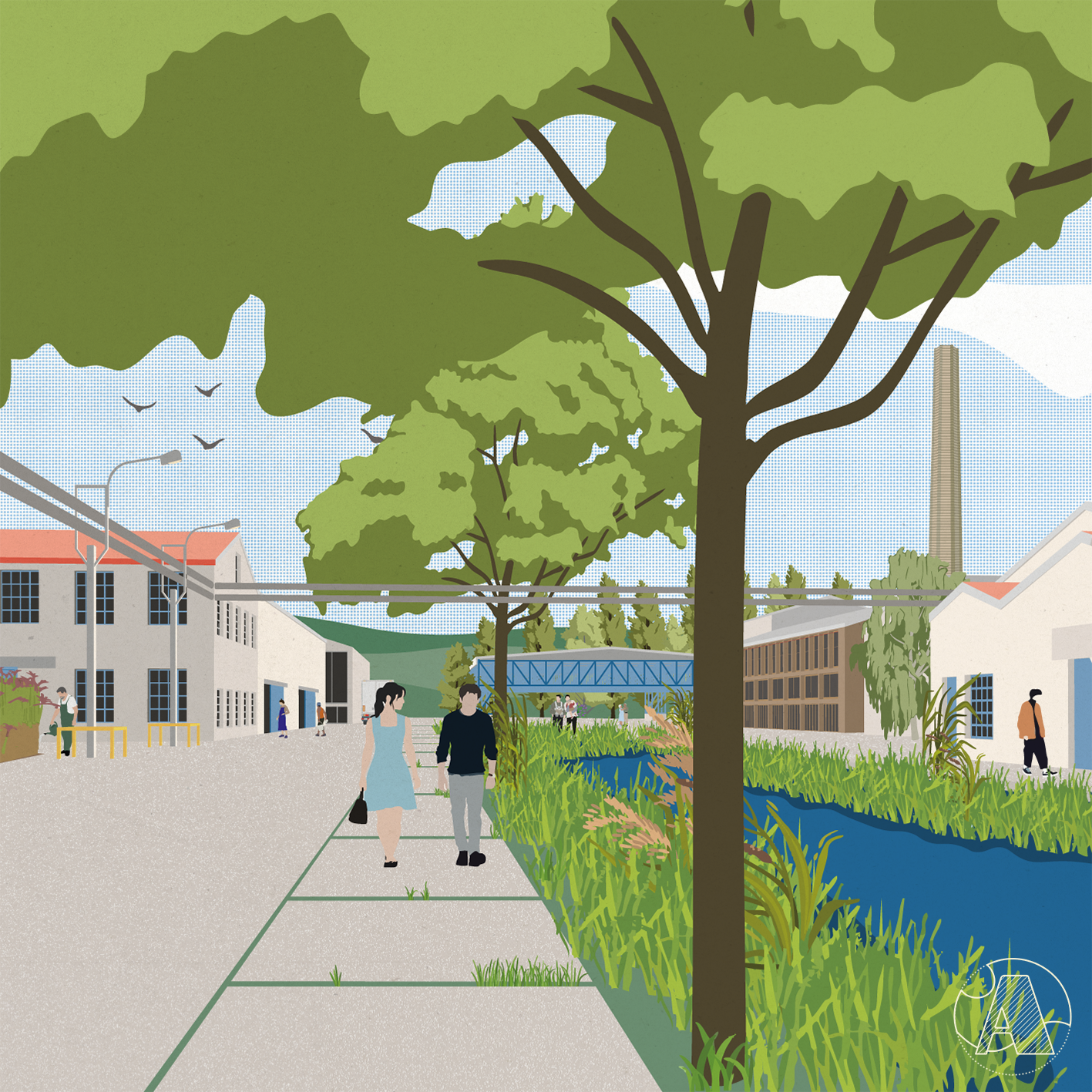 Mantes Métamorphoses est un projet réalisé pour le concours EUROPAN 18. J’ai créé l’ADN et la mise en page des planches en amont avec l’équipe et réalisé les illustrations des perspectives sur le projet de régéneration du lieu de l’Entre-Lacs en nouveau lieu de vie urbaine.